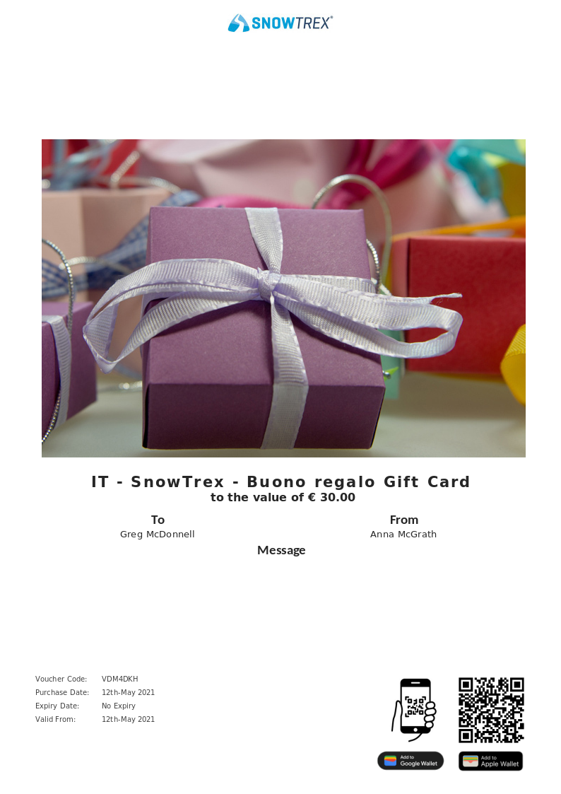 IT - SnowTrex - Buono regalo allows you to purchase instantly printable gift vouchers, special offers and tickets using the Voucher Connect platform.